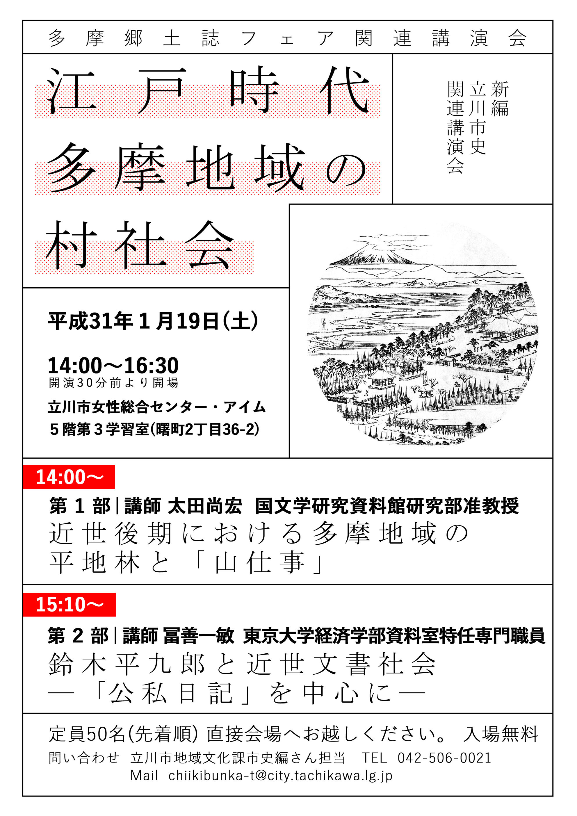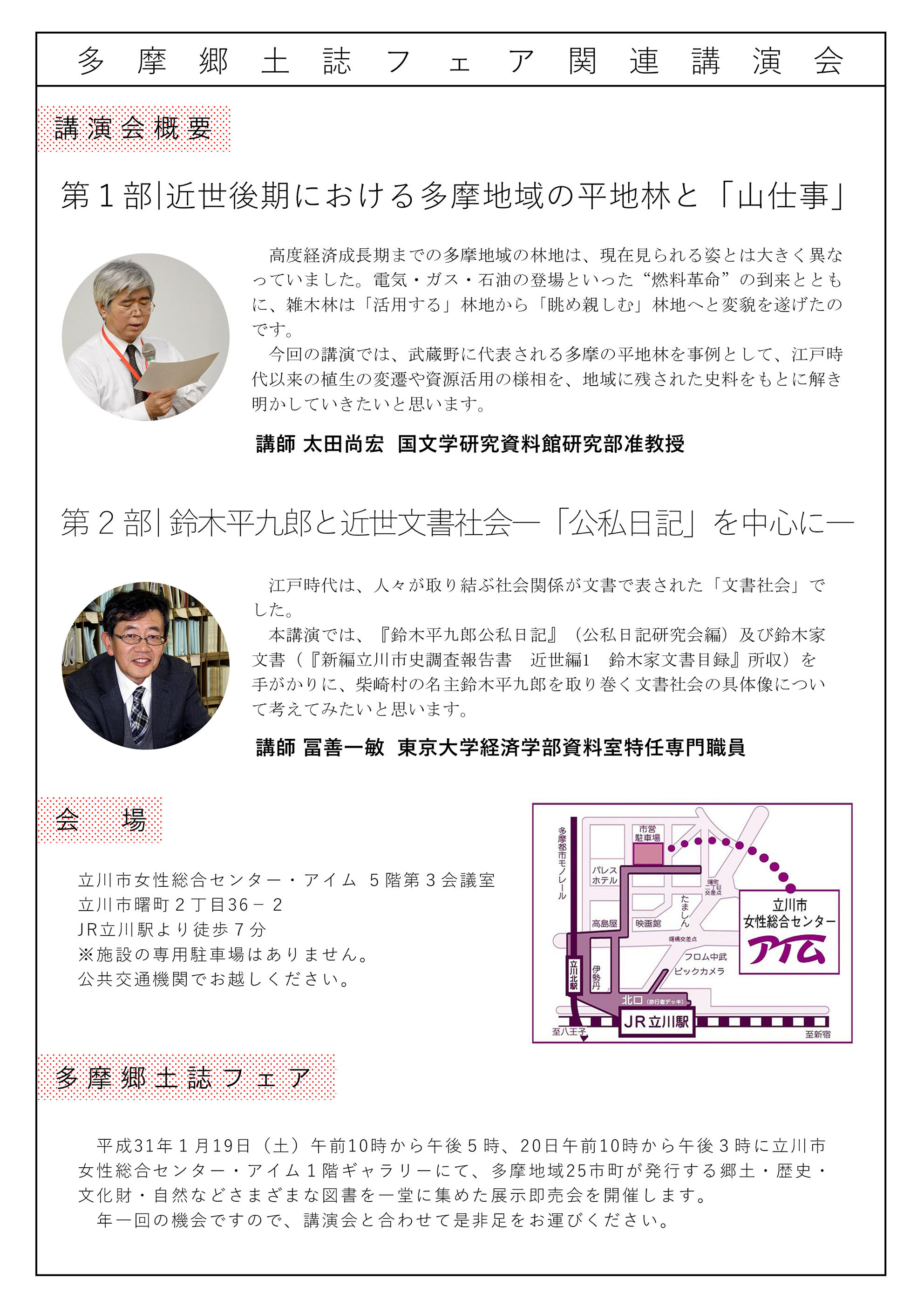 - 開催日:平成31年1月19日(土曜日)※多摩郷土誌フェアとの同時開催