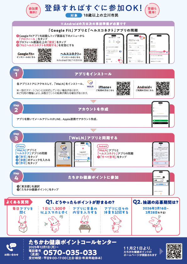 | 対象者 | 「たちかわ健康ポイント」にご参加いただいている方 |
