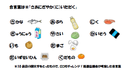 1つの食品だけでは、必要な栄養素を十分にとることはできません。10品目(さかな・あぶら・にく・ぎゅうにゅう・やさい・かいそう・いも・たまご・だいずせいひん・くだもの)を組み合わせてとると、フレイル予防に必要な栄養素をとることができます。1日に7品目以上を目指しましょう。
