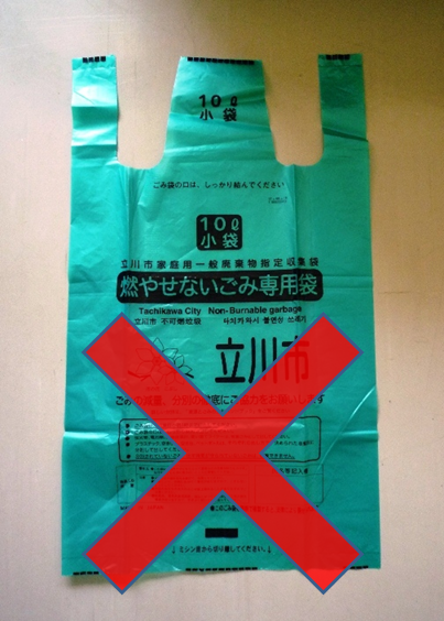 プラスチックを燃やせないごみ専用袋(緑色)に入れないでください
