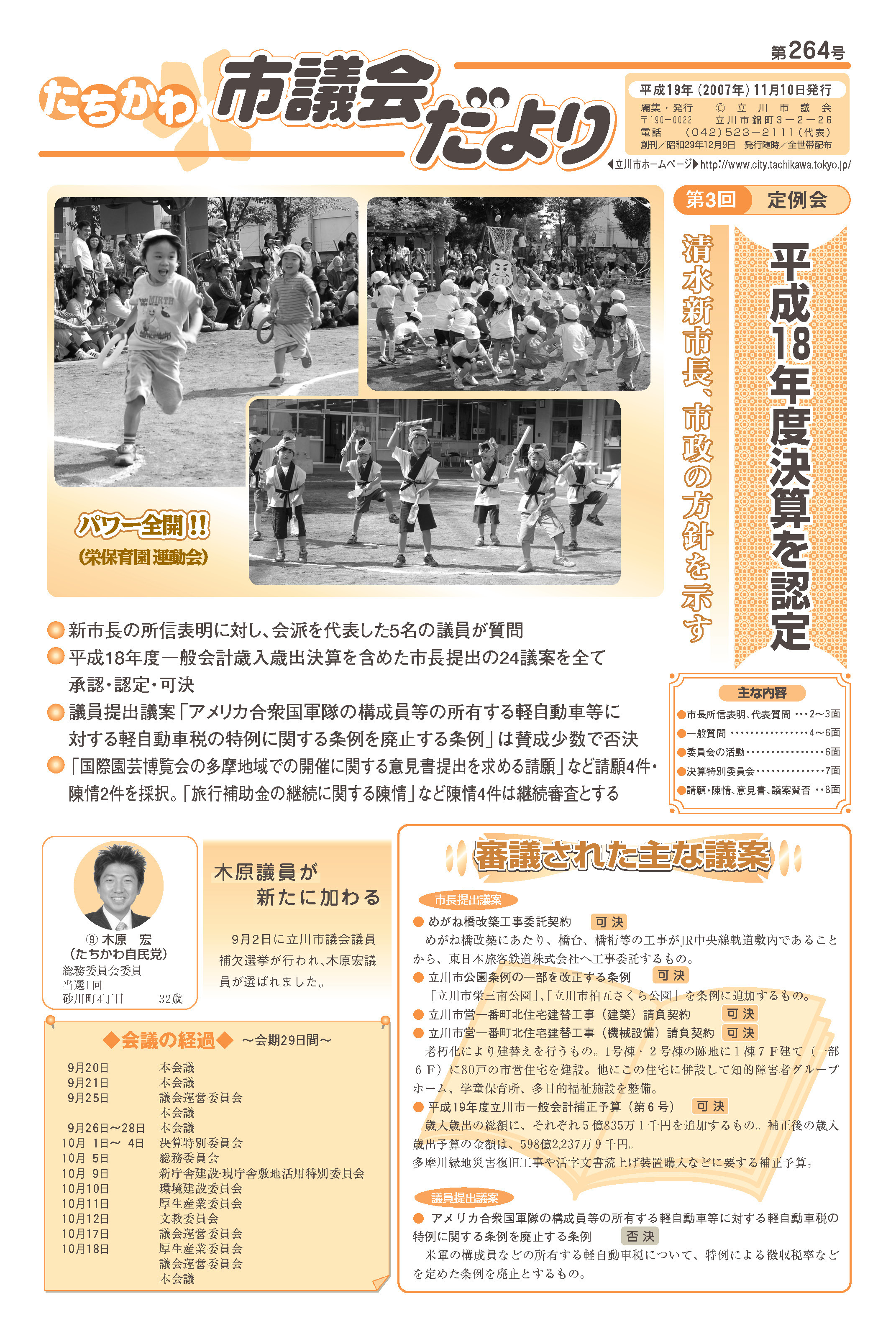 議会だより第264号 平成19年(2007年)11月10日発行