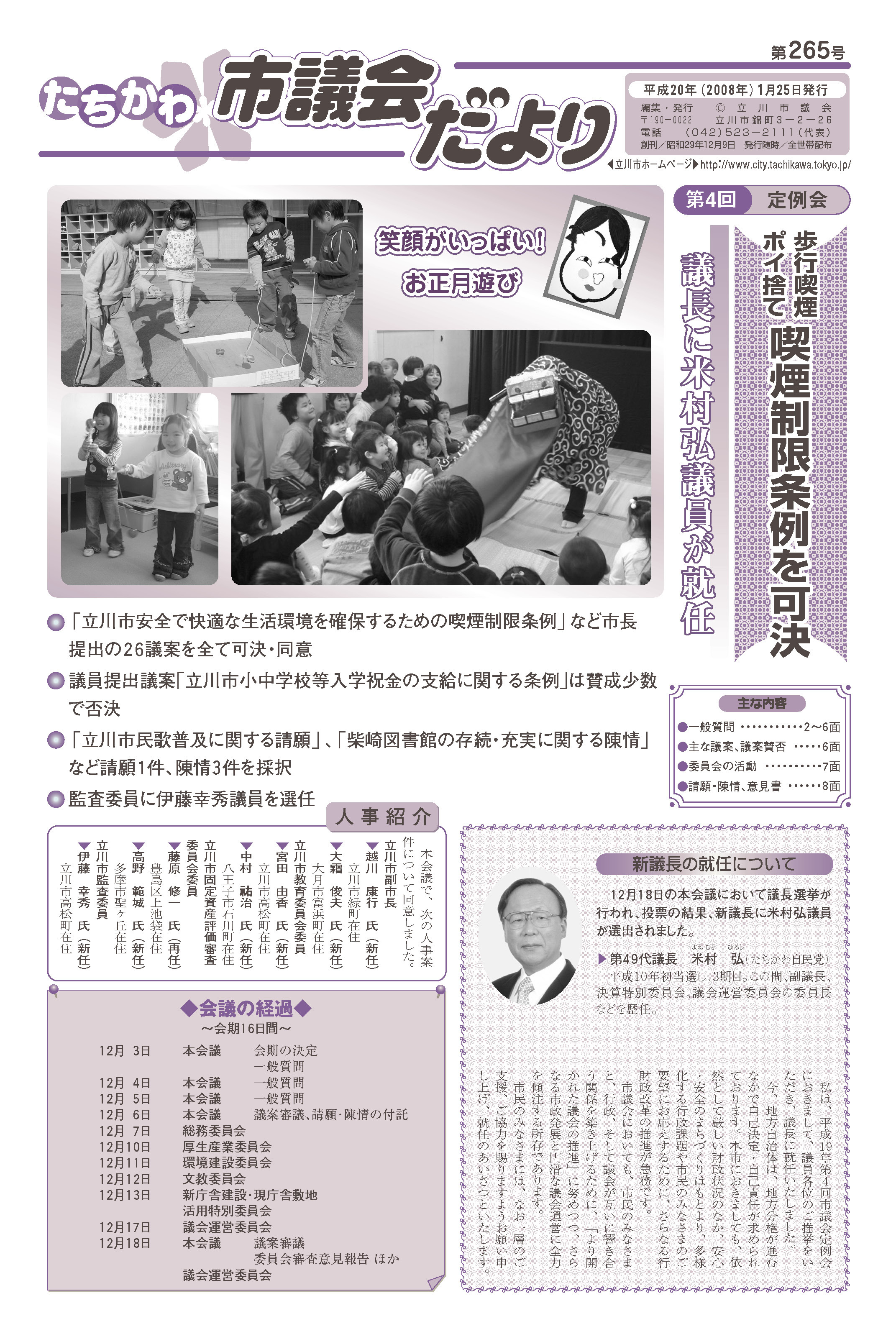 議会だより第265号 平成20年(2008年)1月25日発行