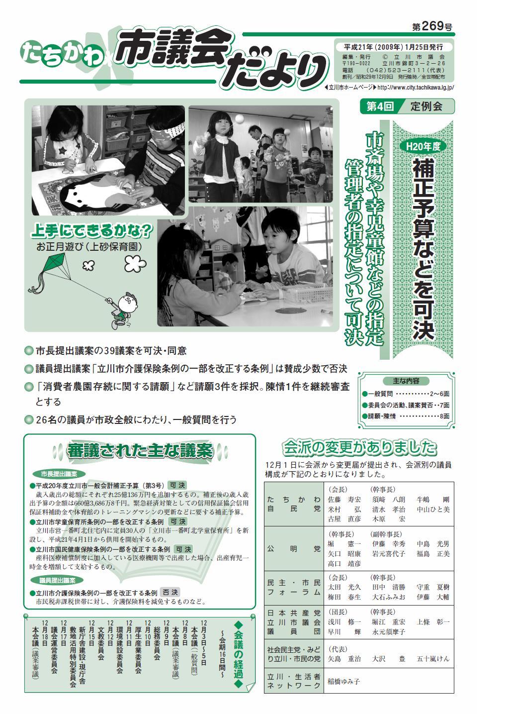 平成20年12月3日から12月18日の間に行われた、平成20年第4回定例会の内容を中心に掲載しています。